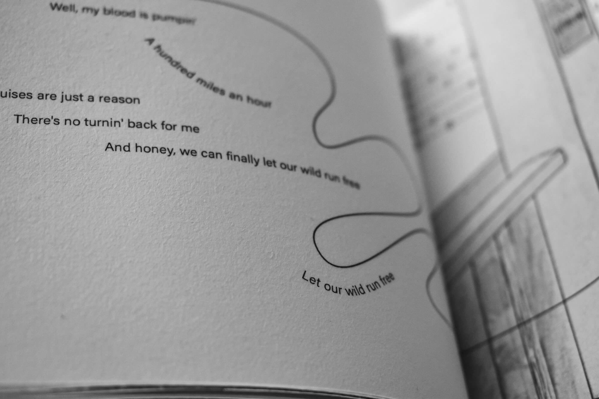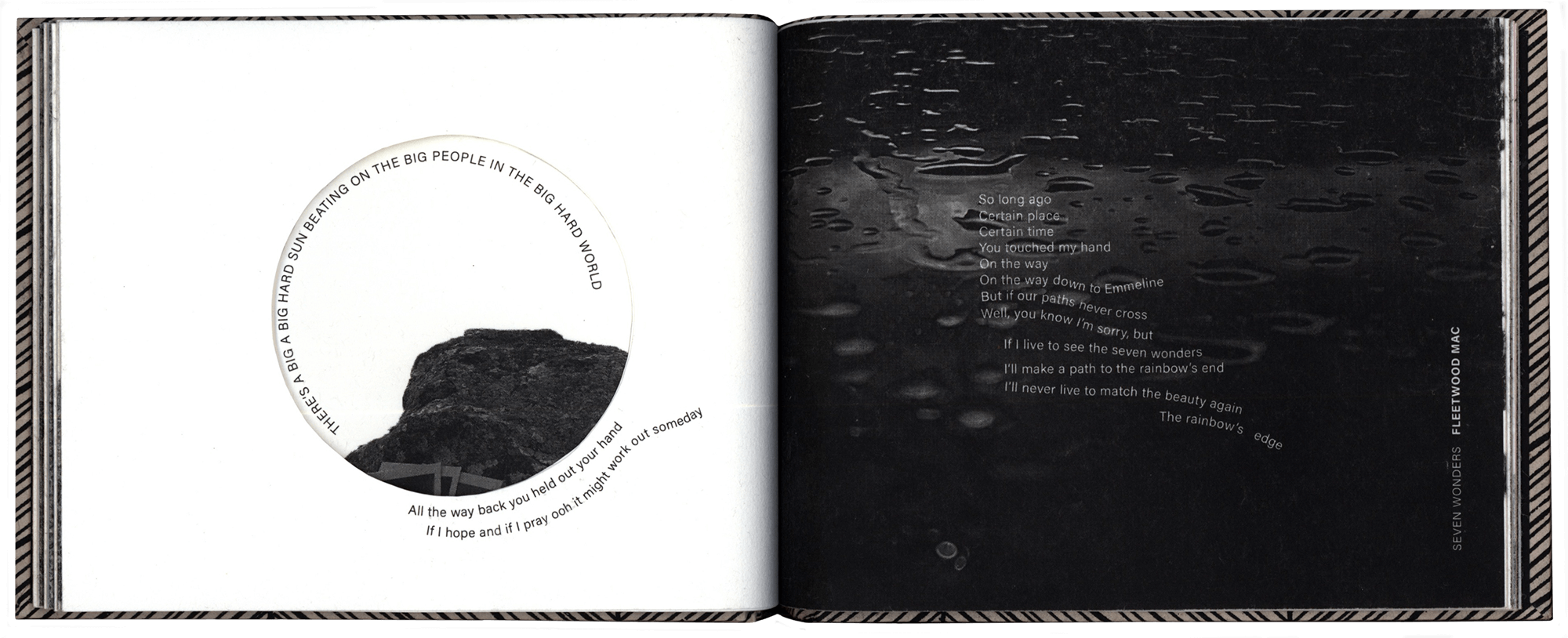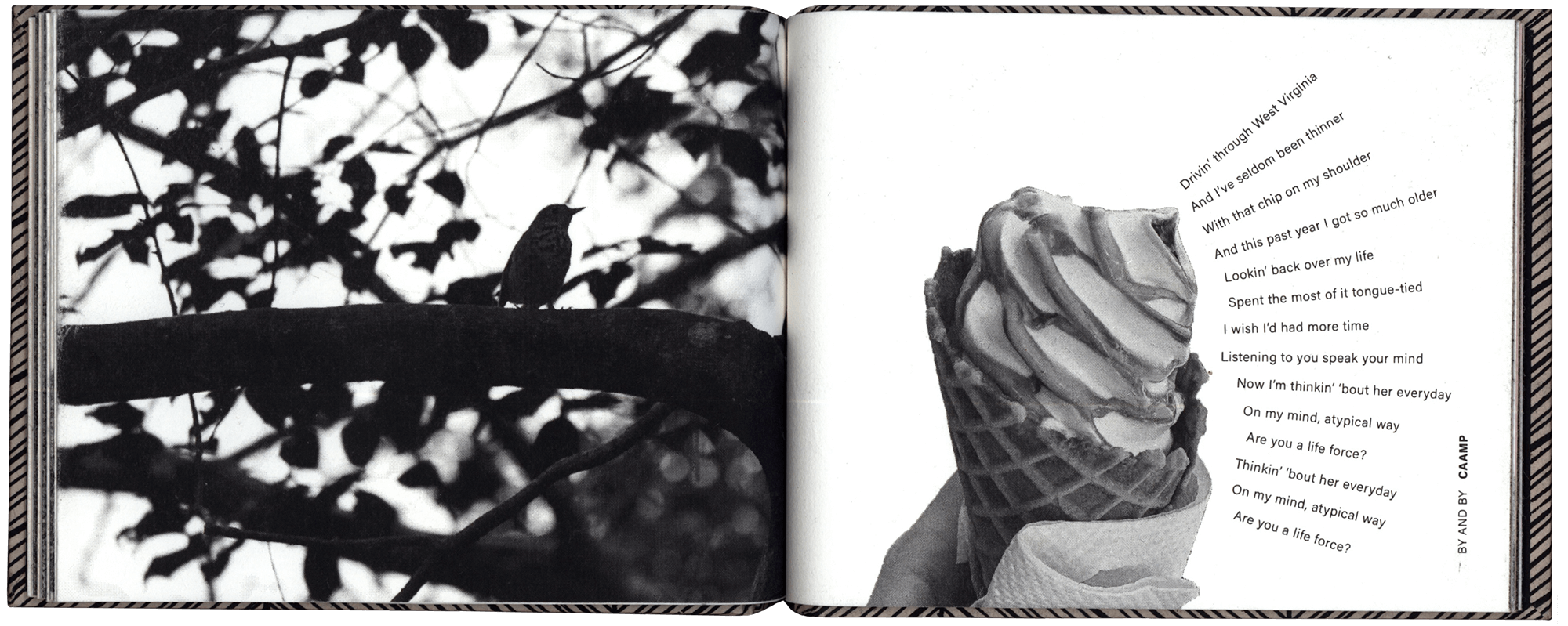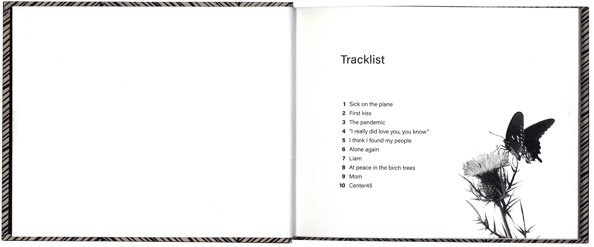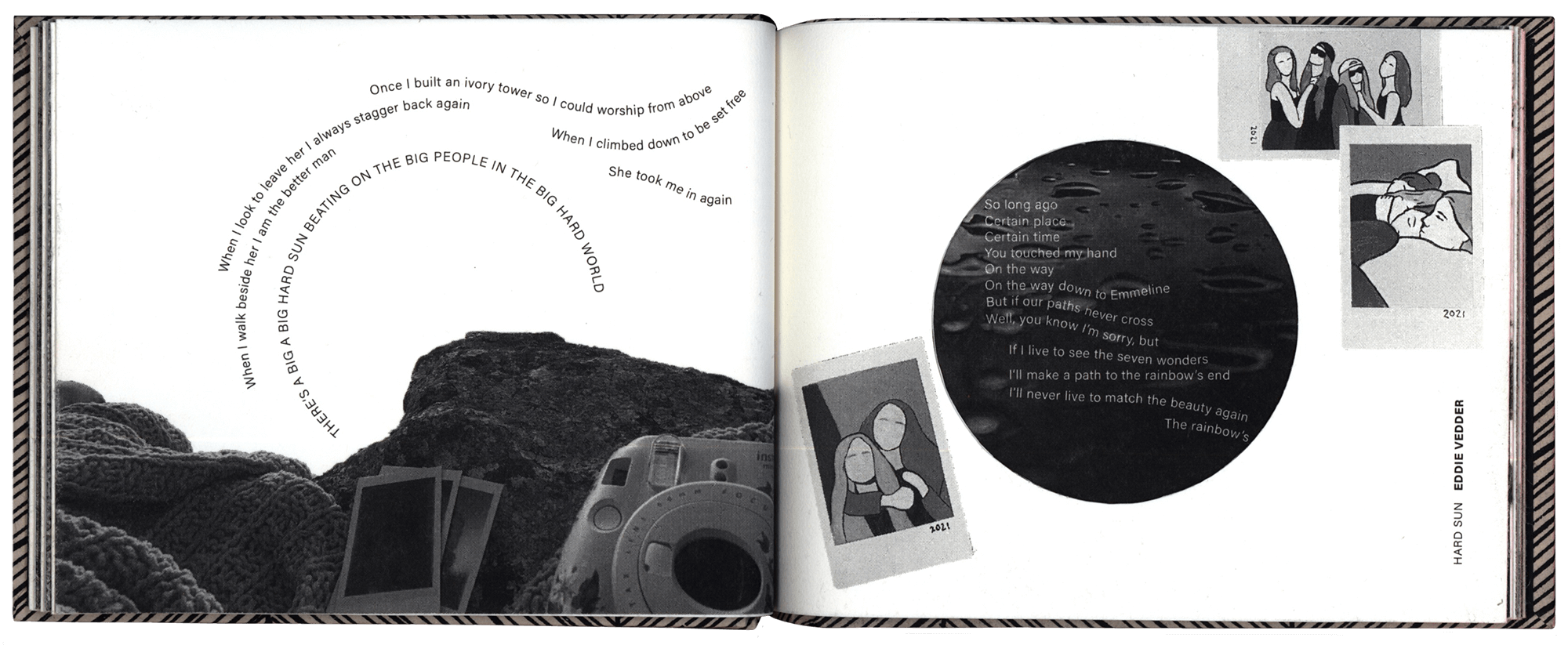 This book features a collection of songs tied to personal memories from 2018 to 2022. Designed, printed, and assembled by hand, the song lyrics are intertwined with personal photographs to offer glimpses into some of these memories.