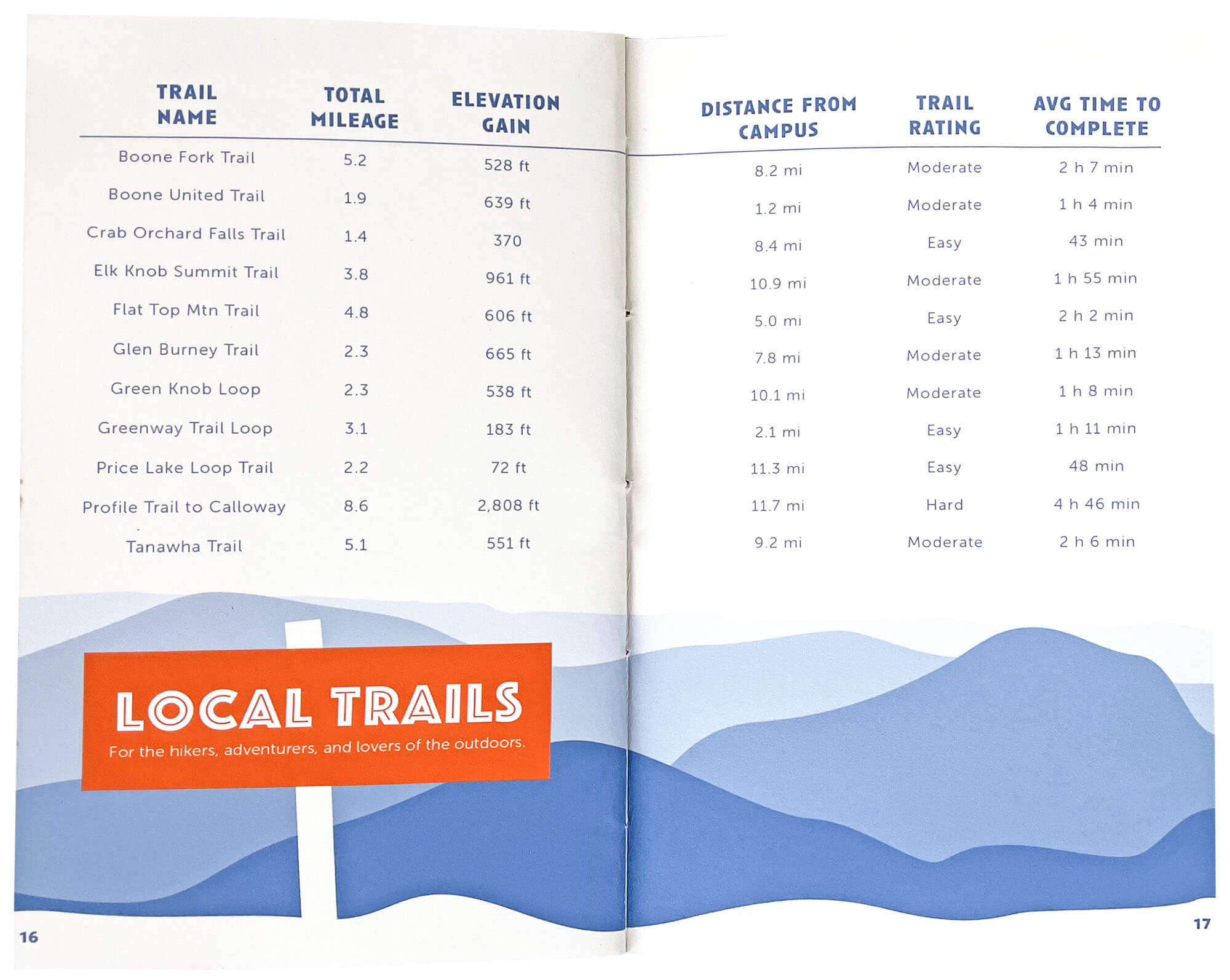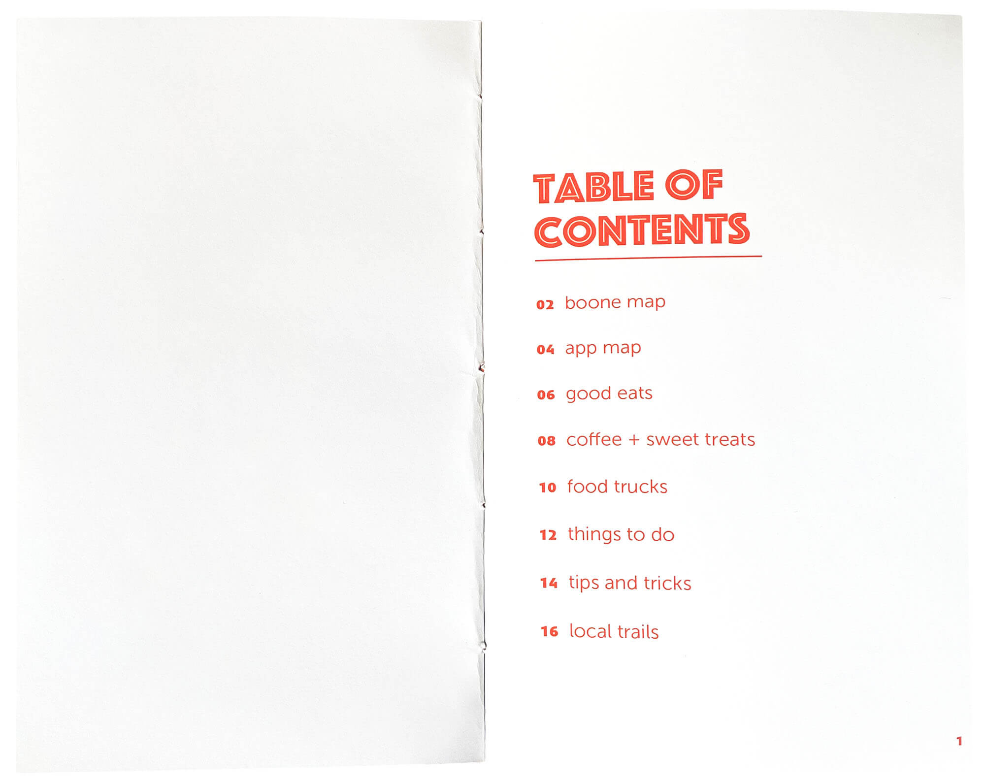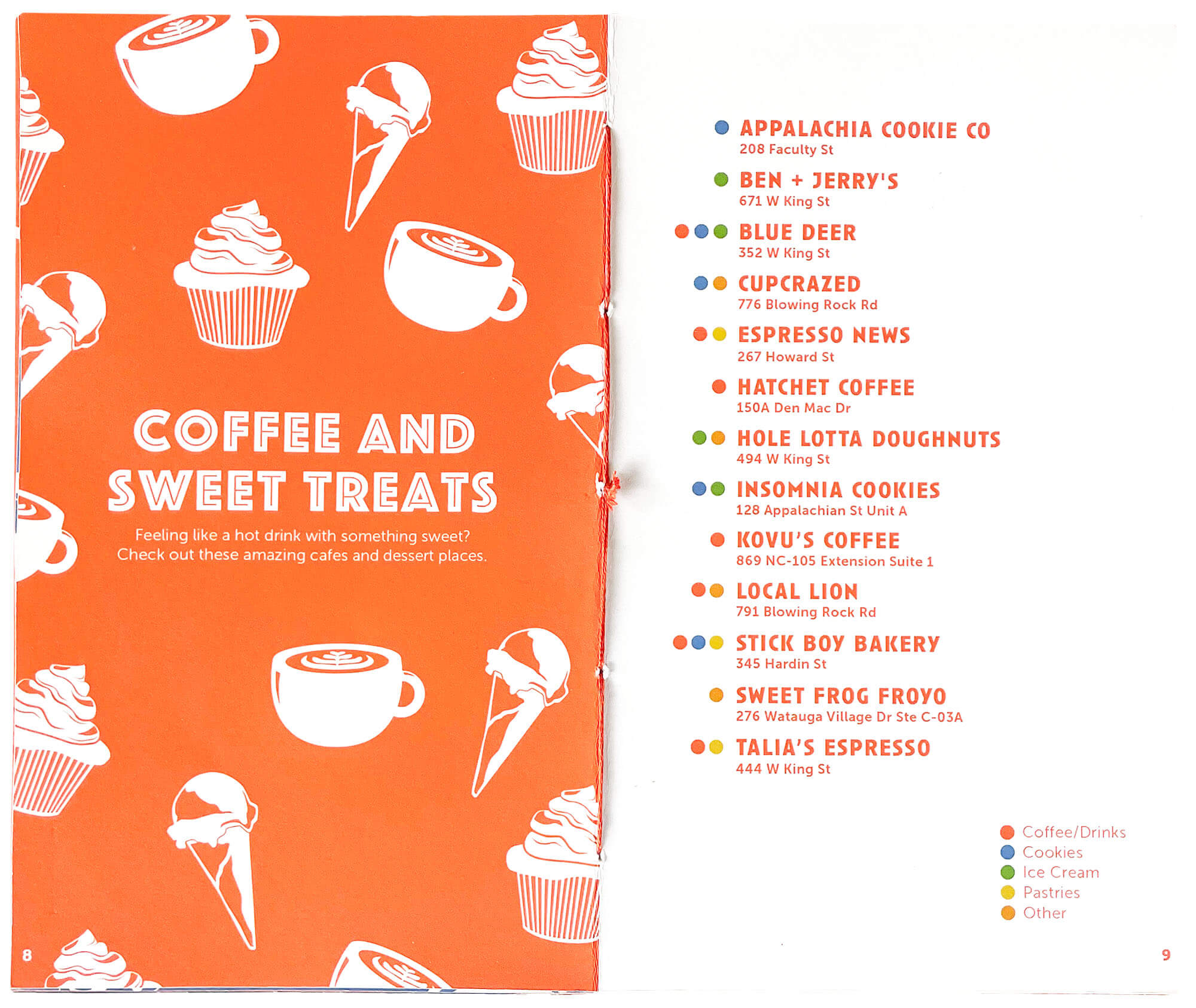 The Incoming Student’s Pocket Guide to Boone is a compilation of designed maps, lists, and other insider information.