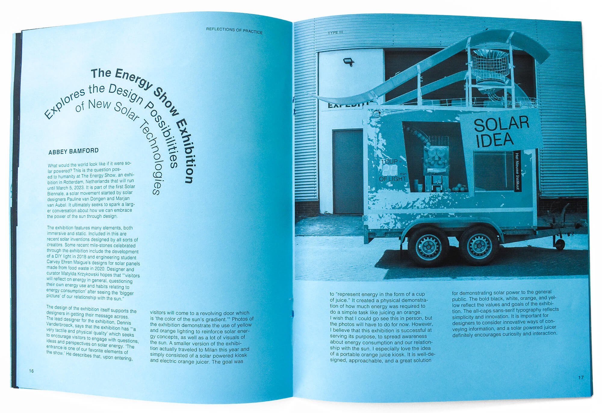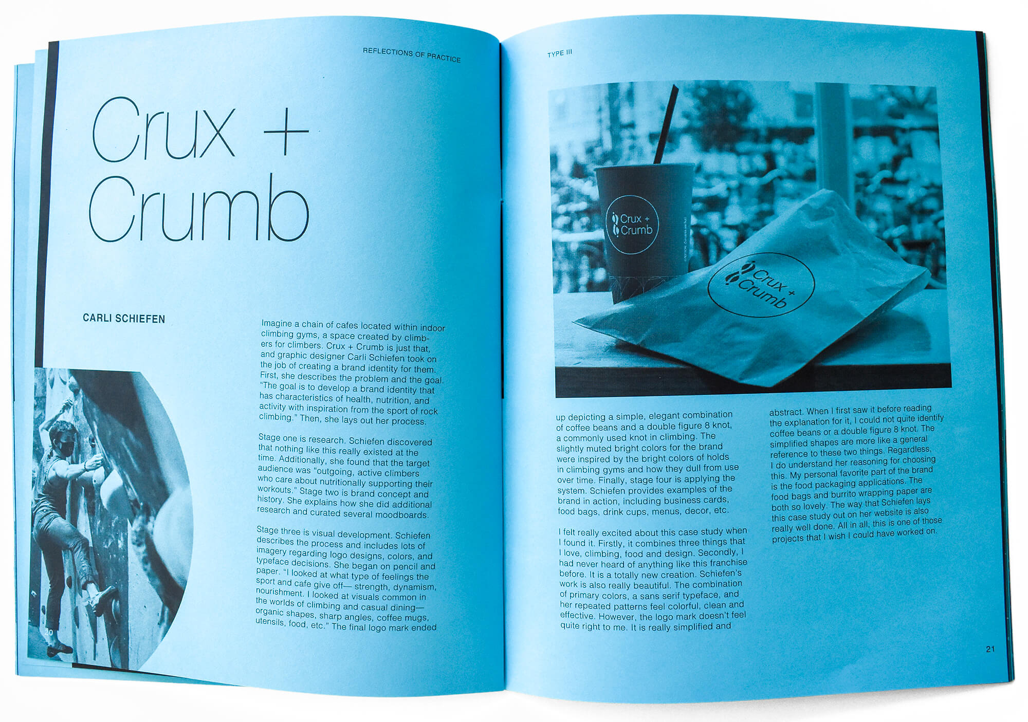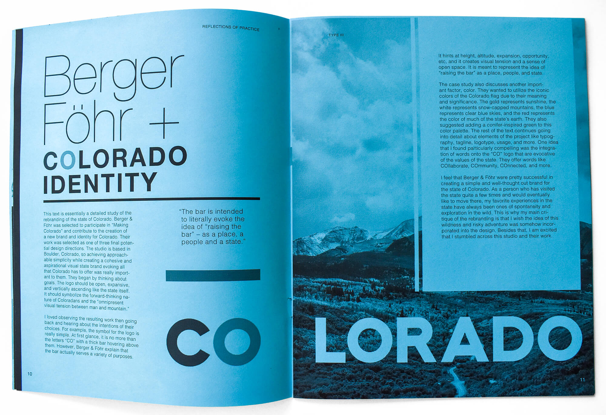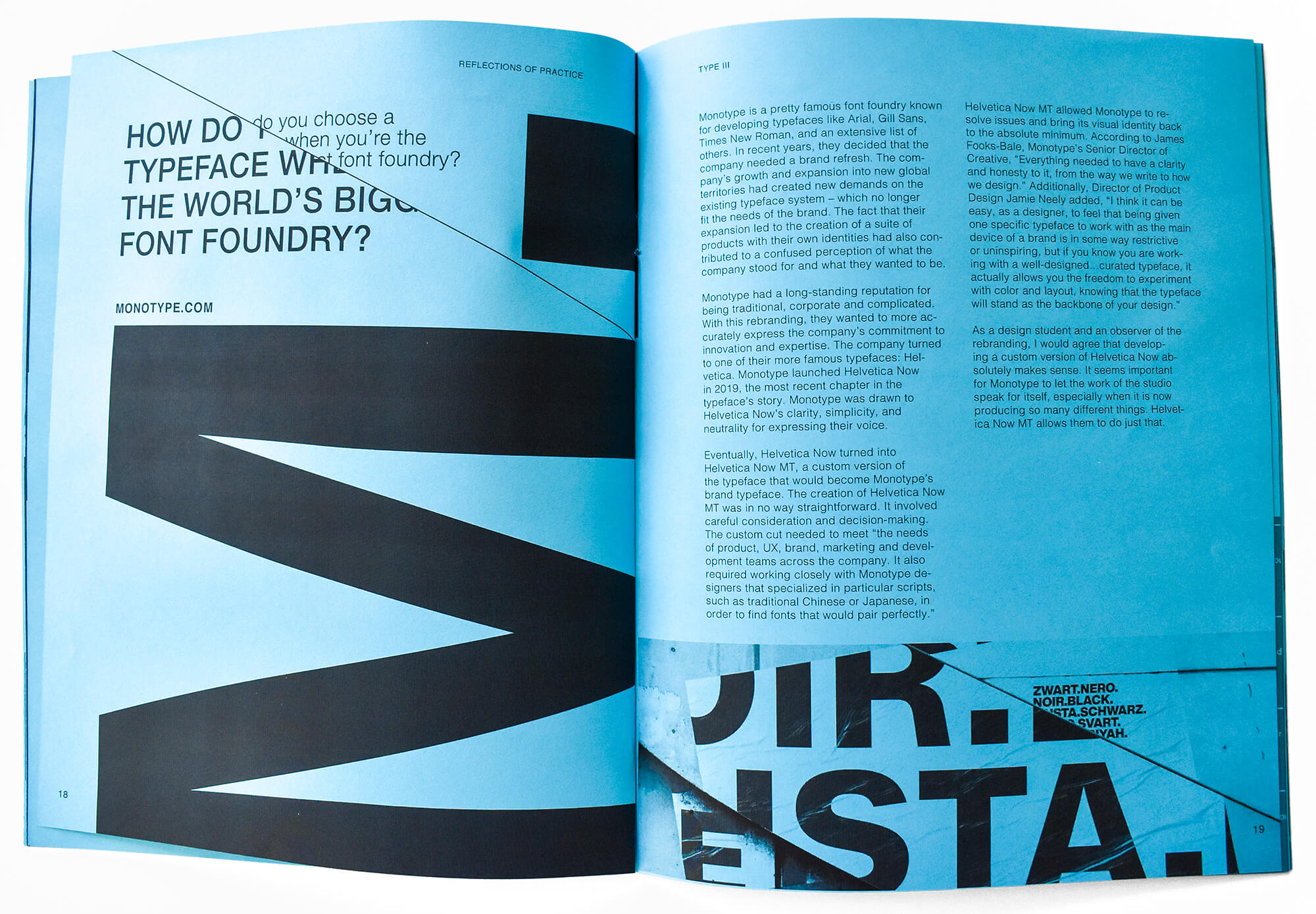 This publication is a study in systems, typography and layout. Over several months, the writings and spreads were simultaneously created. Then, the spreads were refined into a consistent design system.