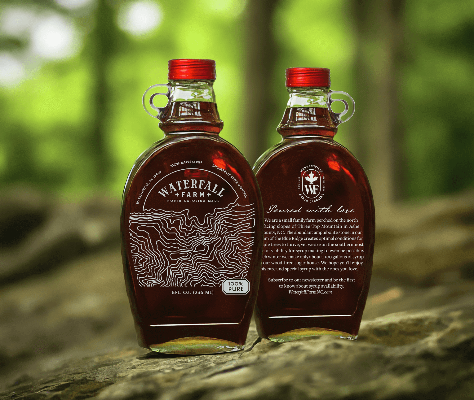 The Waterfall Farm brand communicates the labor of love and dedication to craft that comes with a family business. The values of the farm include: strong family ties, love of Ashe county, and connection to the Blue Ridge mountains.