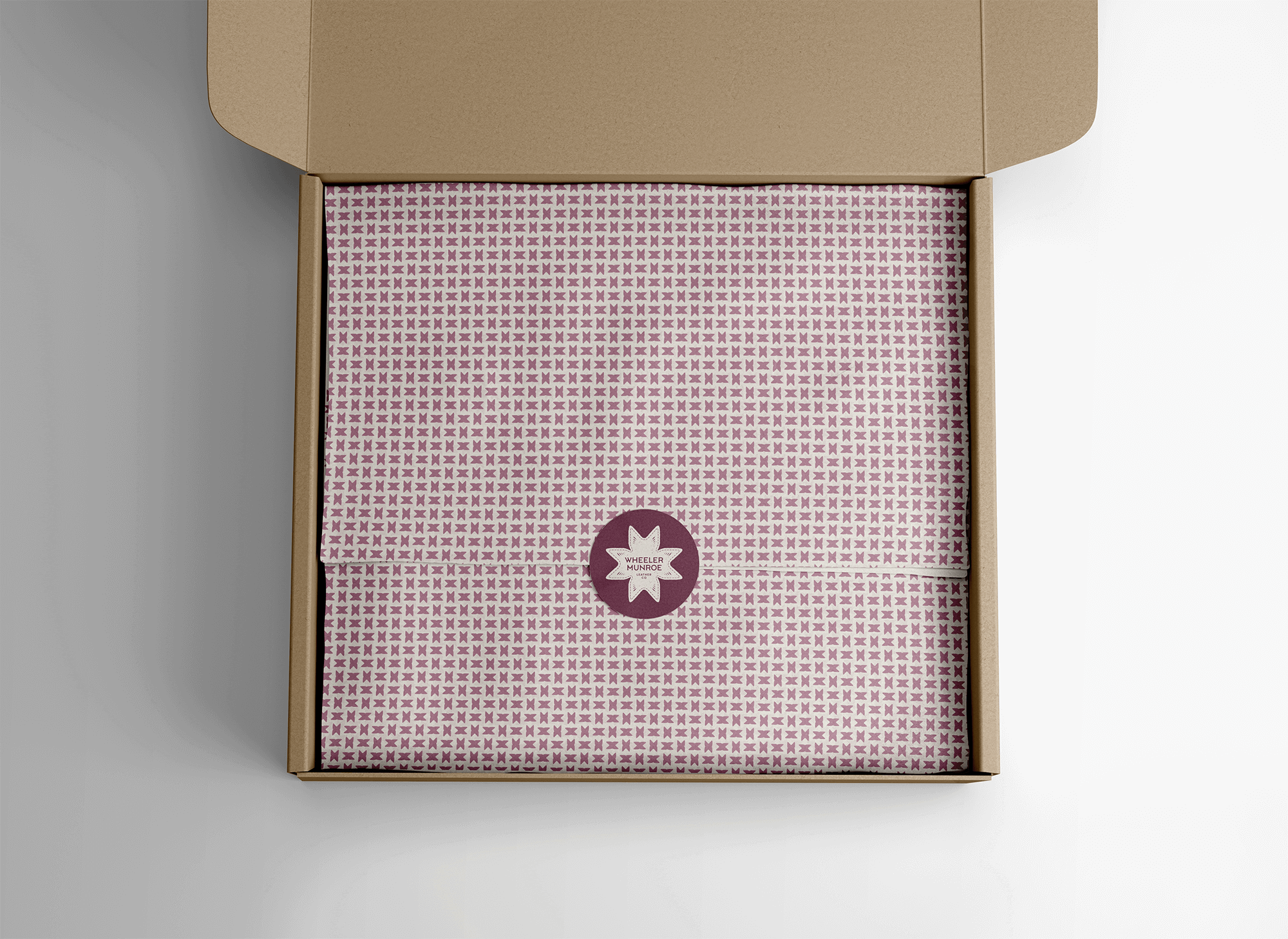 The star shape was created from the negative space of letters "W" and "M." The shape embodies the company's connection to place and craft through its resemblance to barn quilt patterns, and it symbolizes the company's connection to flowers/gardening.